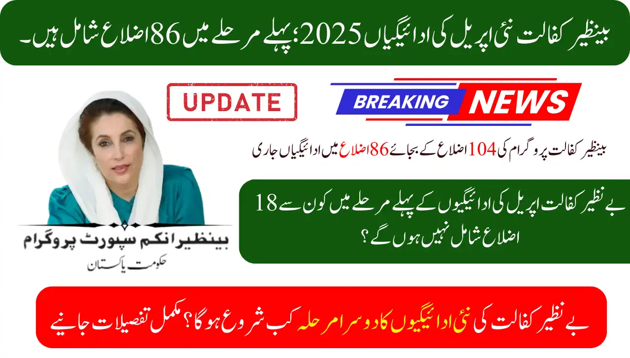 Benazir Kafalat New April Payments 2025; 86 Districts Included In The 1st Phase