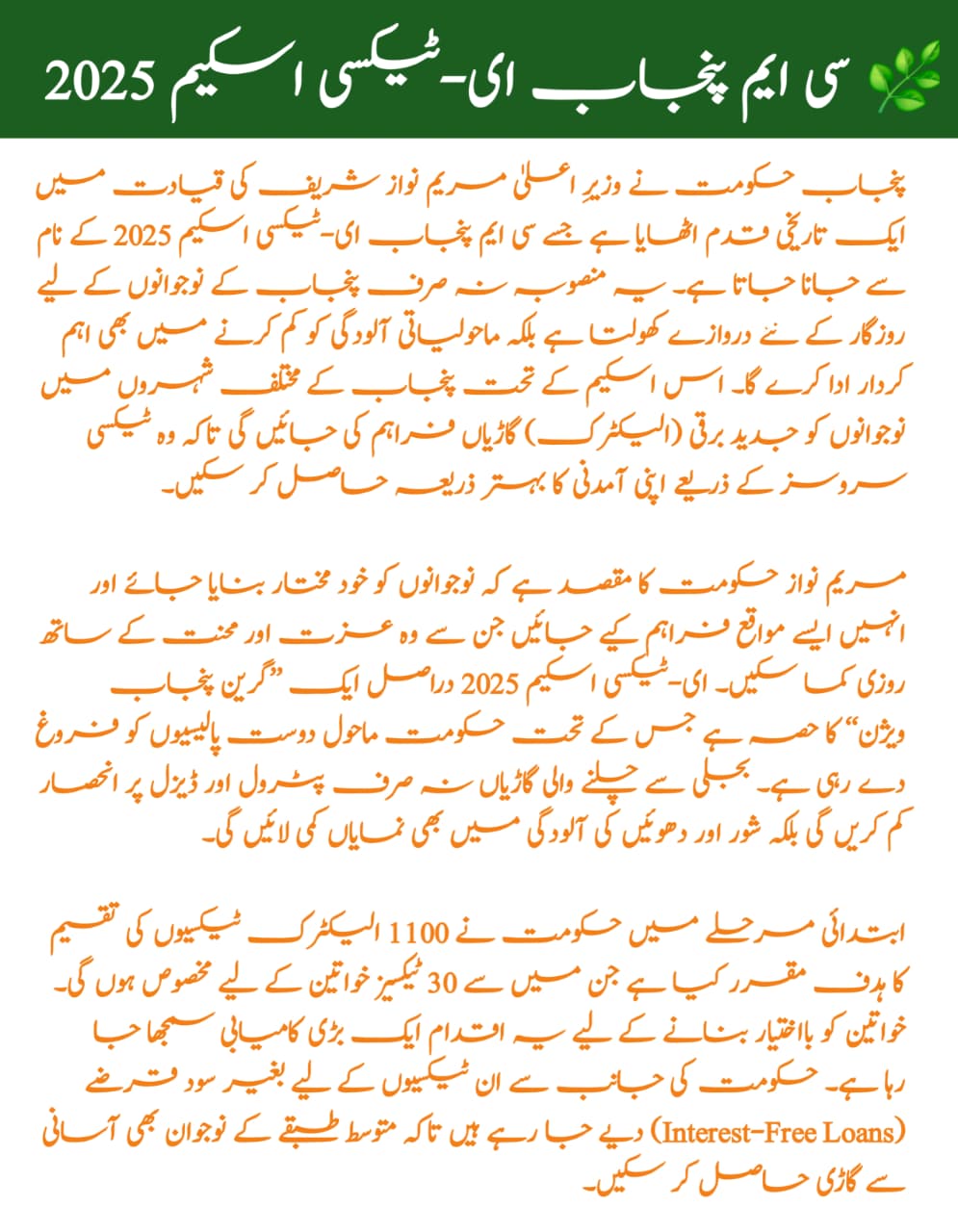 - Scheme Name: CM Punjab E-Taxi Scheme 2025